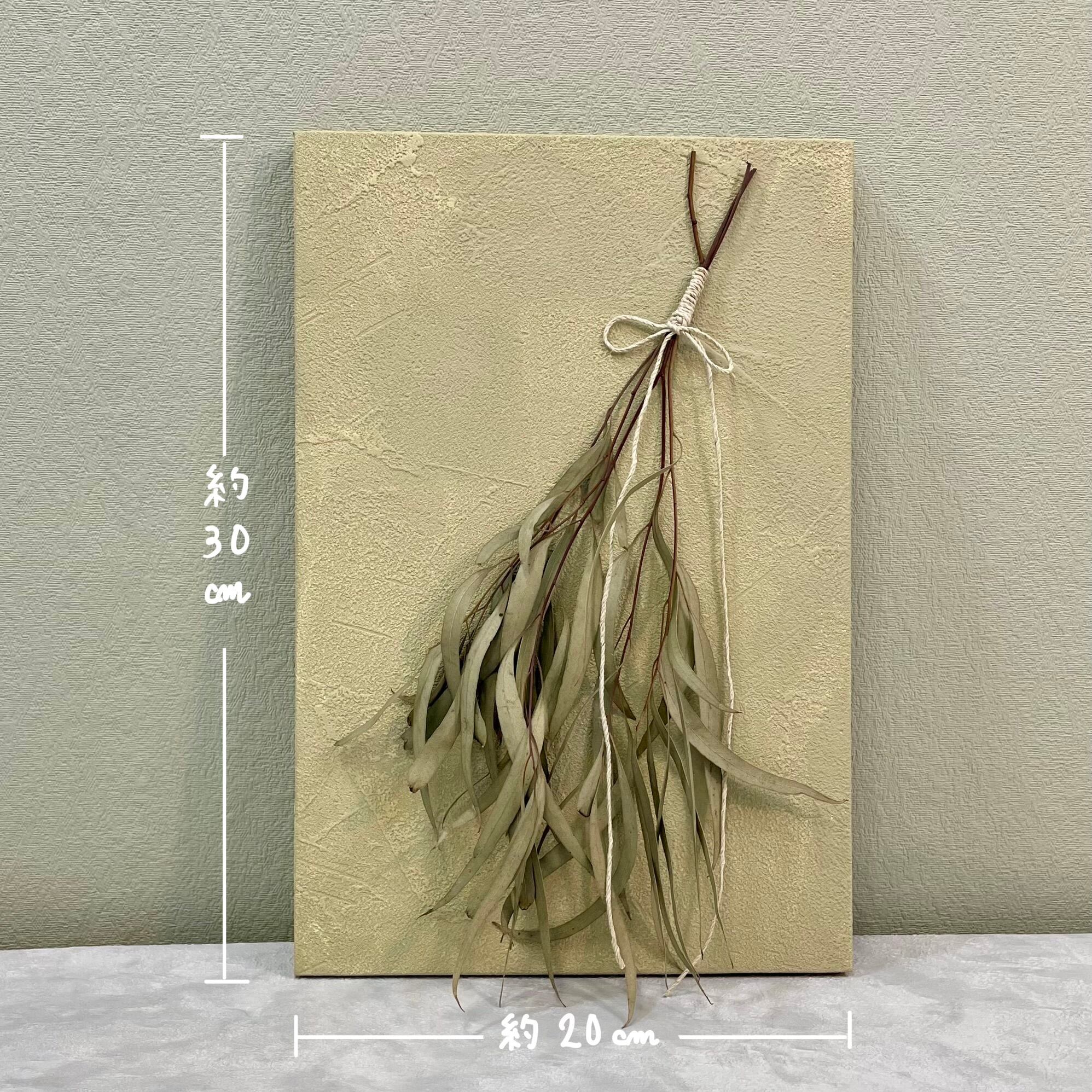 ユーカリのドライフラワーをキャンバスボードに植物標本風にあしらった壁掛けです☺︎