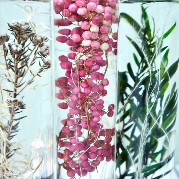 プリザーブドフラワー :千日紅、ペッパーベリー、ユーカリ 、スターチスなど